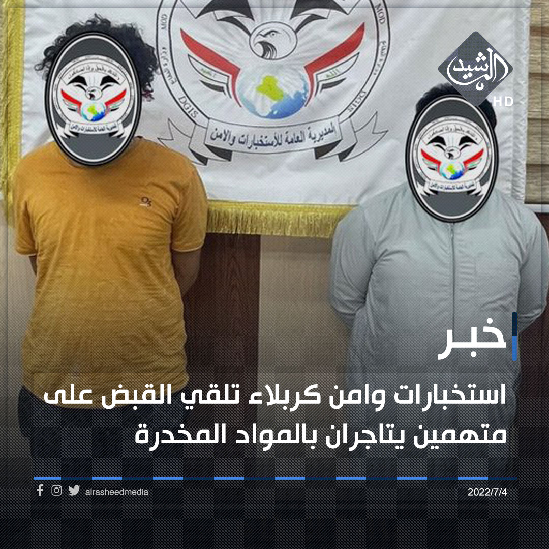 استخبارات وامن كربلاء تلقي القبض على متهمين يتاجران بالمواد المخدرة