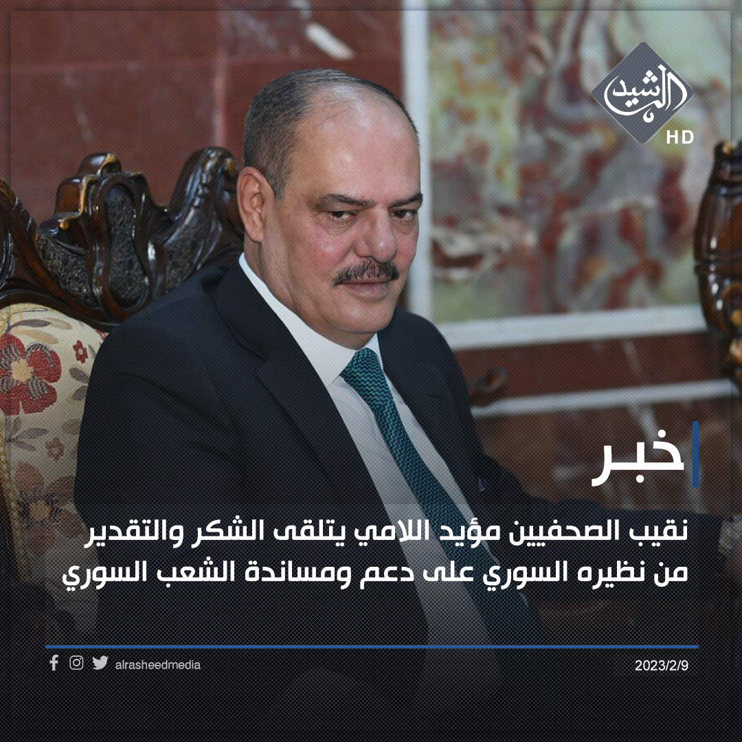 نقيب الصحفيين مؤيد اللامي يتلقى الشكر والتقدير من نظيره السوري على دعم ومساندة الشعب السوري