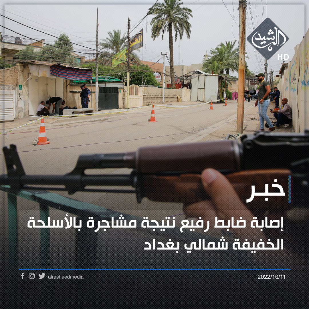 إصابة ضابط رفيع نتيجة مشاجرة بالأسلحة الخفيفة شمالي بغداد