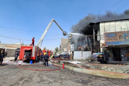 إخماد حريق اندلع داخل ورش للأدوات الاحتياطية في منطقة الطالبية ببغداد