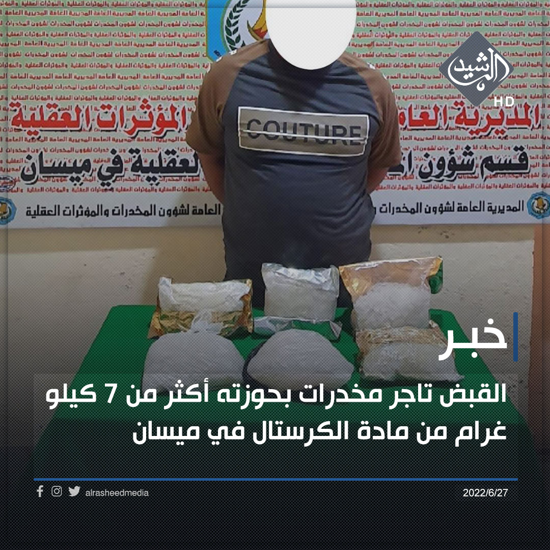 القبض تاجر مخدرات بحوزته أكثر من 7 كيلوغرامات من مادة الكرستال في ميسان