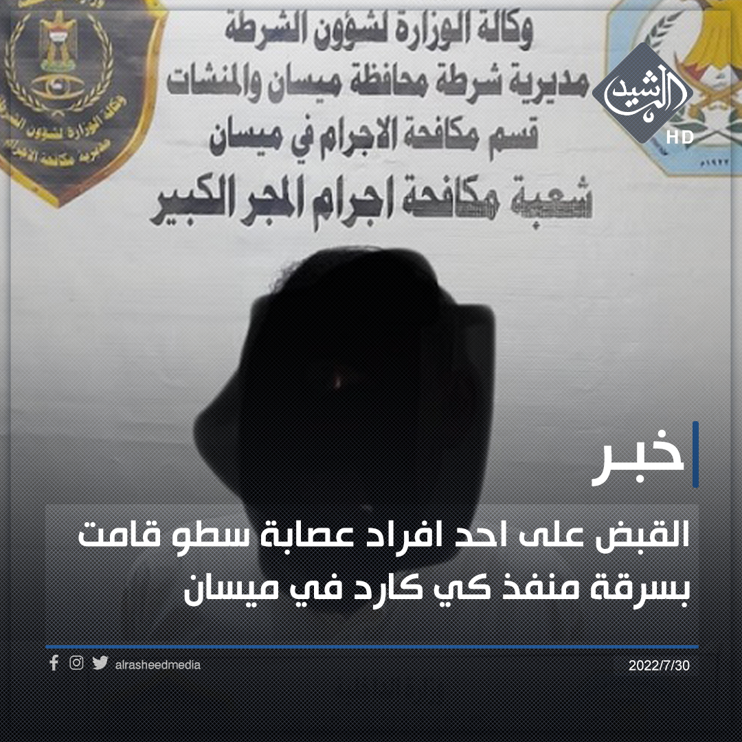 القبض على احد افراد عصابة سطو قامت بسرقة منفذ كي كارد في ميسان