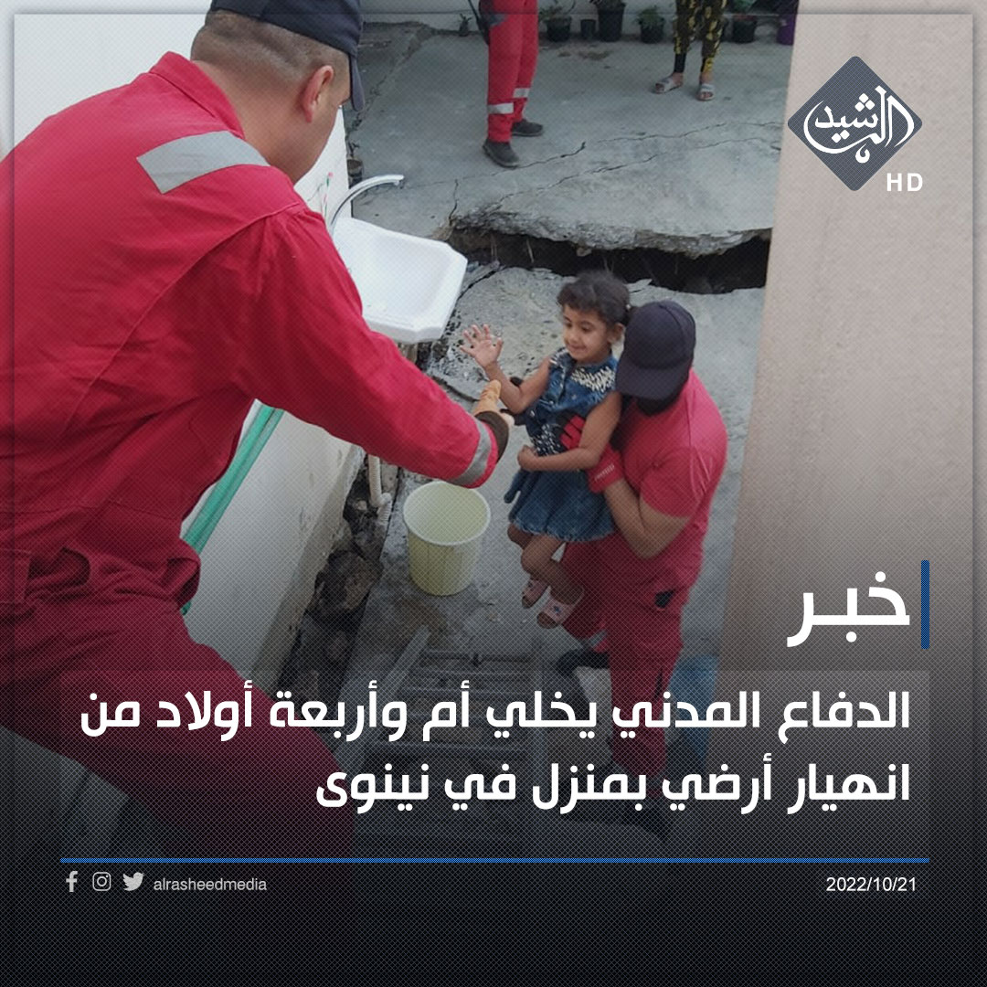 الدفاع المدني يخلي أم وأربعة أولاد من انهيار أرضي بمنزل في نينوى