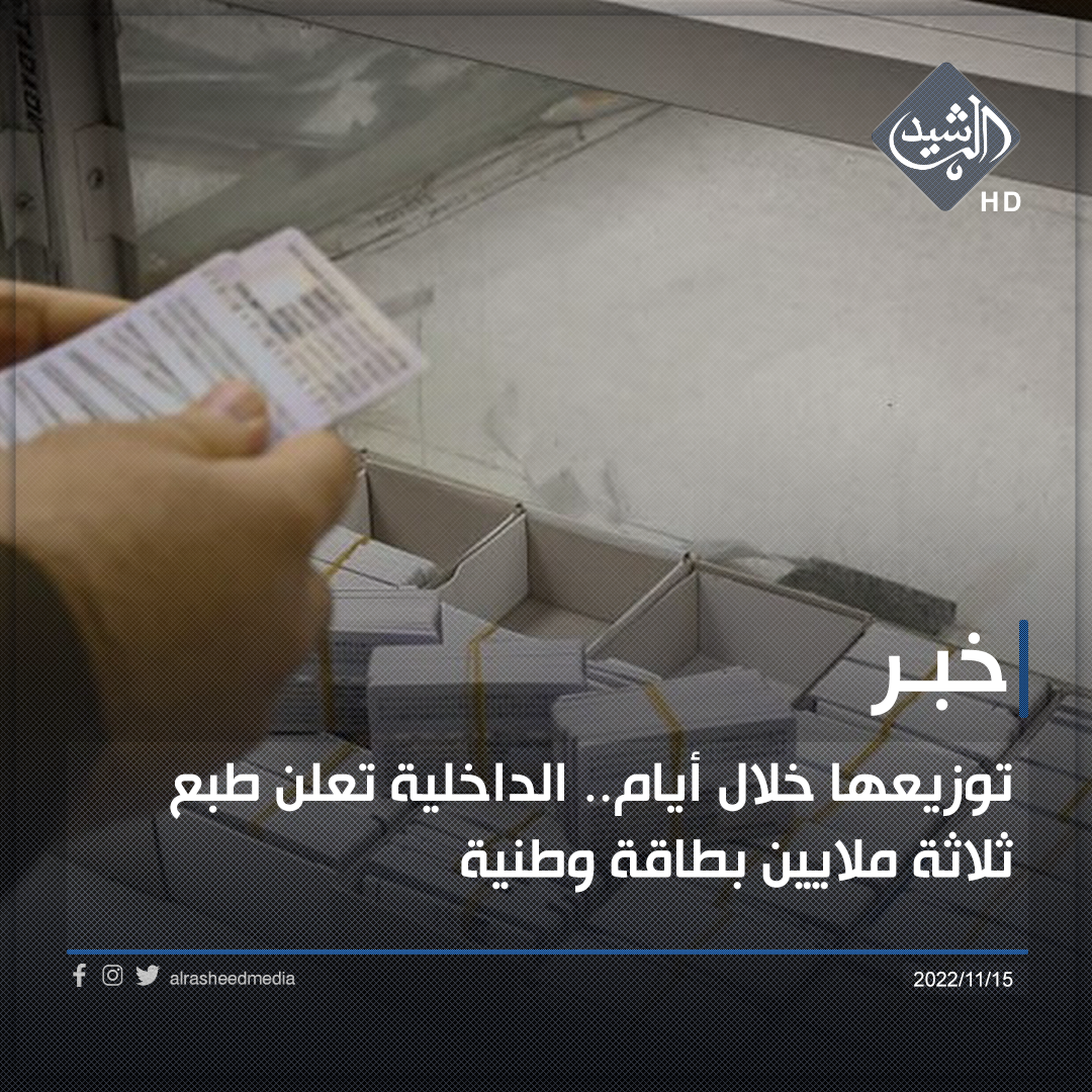 توزيعها خلال أيام.. الداخلية تعلن طبع ثلاثة ملايين بطاقة وطنية