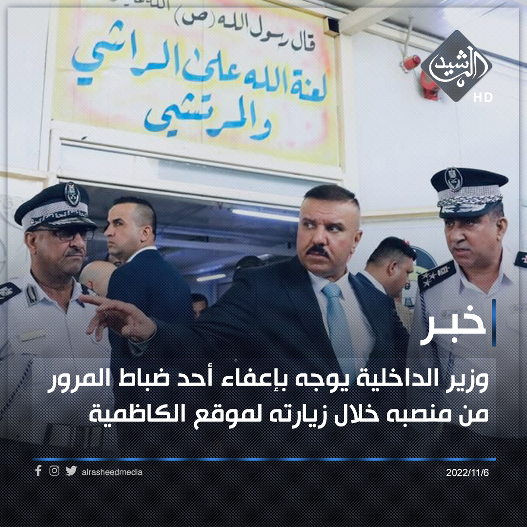 وزير الداخلية يوجه بإعفاء أحد ضباط المرور من منصبه خلال زيارته لموقع الكاظمية