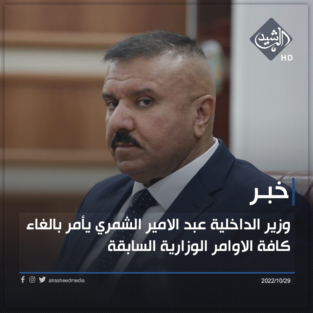 بالوثيقة .. وزير الداخلية عبد الامير الشمري يأمر بالغاء كافة الاوامر الوزارية السابقة