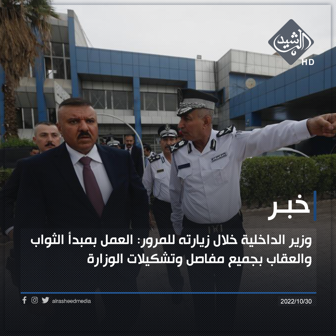 وزير الداخلية خلال زيارته للمرور: العمل بمبدأ الثواب والعقاب بجميع مفاصل وتشكيلات الوزارة