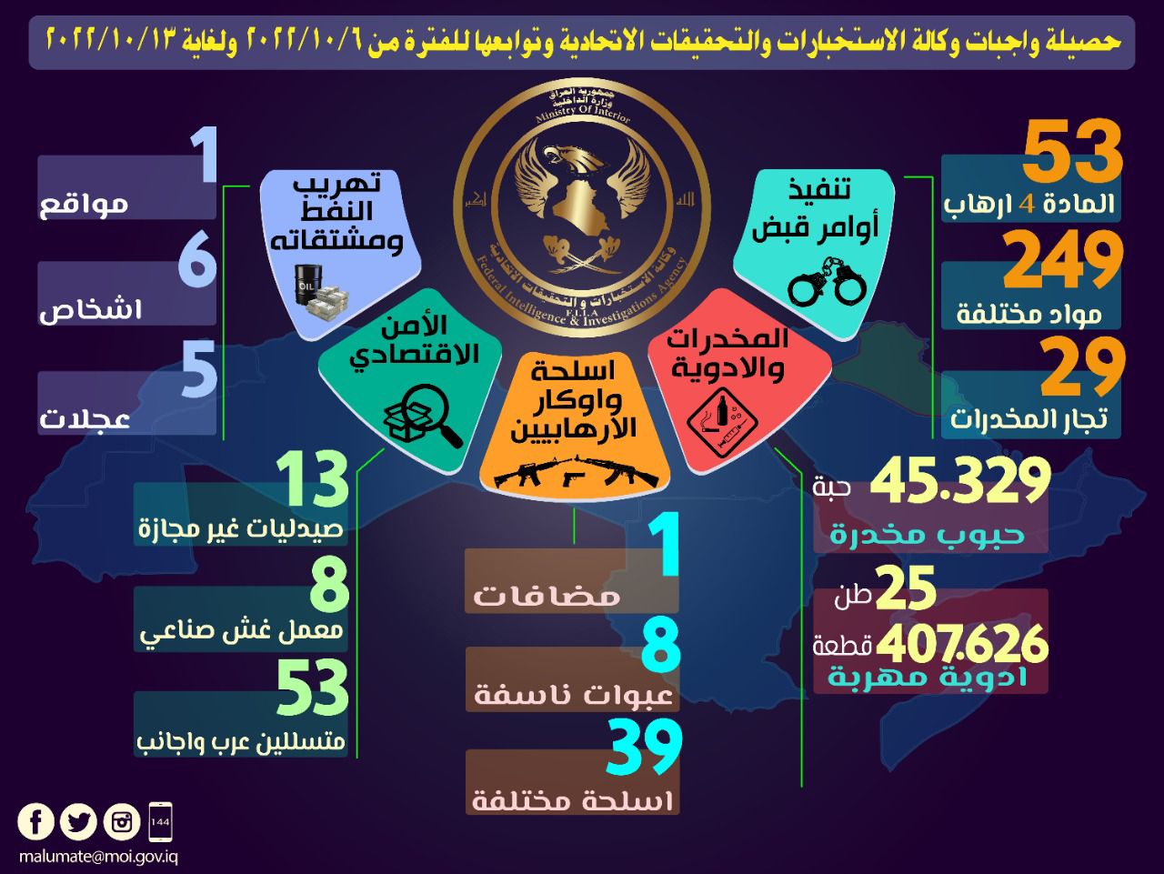 حصيلة واجبات ونشاطات وكالة استخبارات الداخلية خلال الاسبوع الماضي