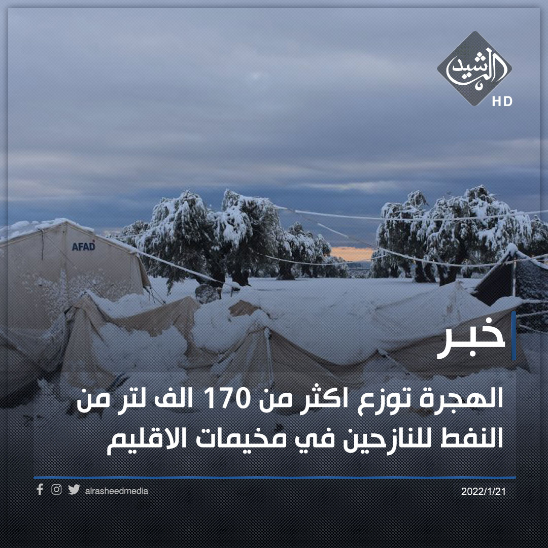 الهجرة تعلن توزيع 20 لتراً من مادة النفط لكل عائلة نازحة في المخيمات