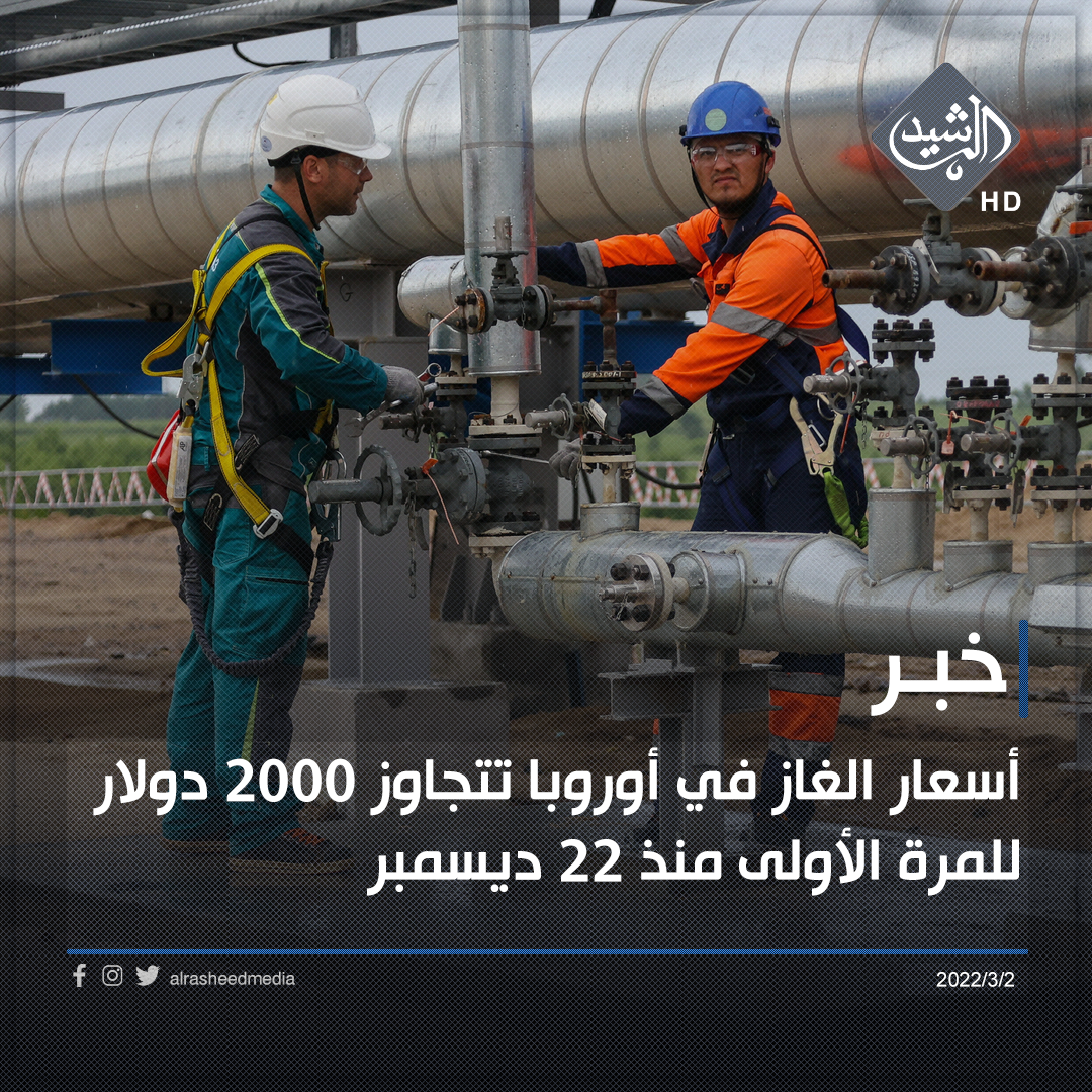 أسعار الغاز في أوروبا تتجاوز 2000 دولار للمرة الأولى منذ 22 ديسمبر