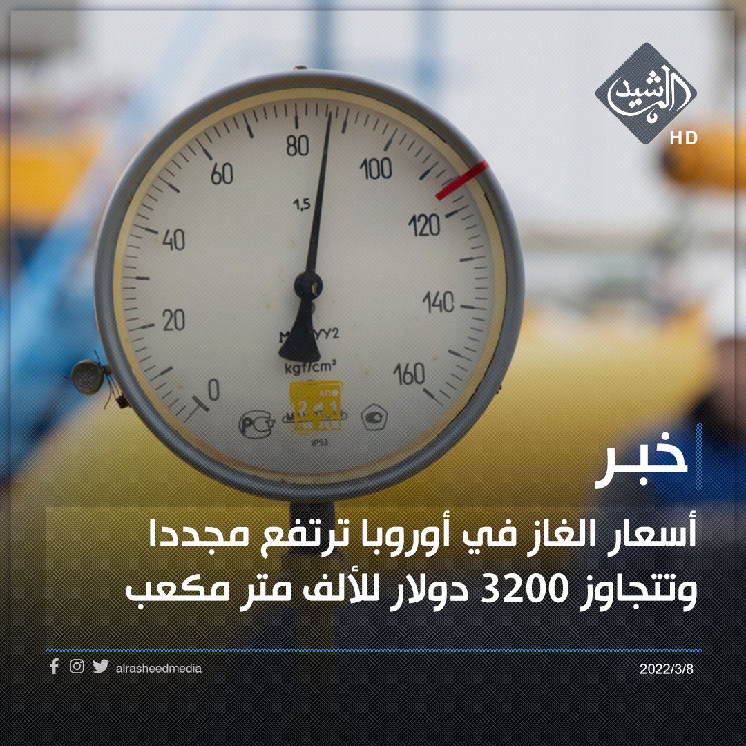 أسعار الغاز في أوروبا ترتفع مجددا وتتجاوز 3200 دولار للألف متر مكعب