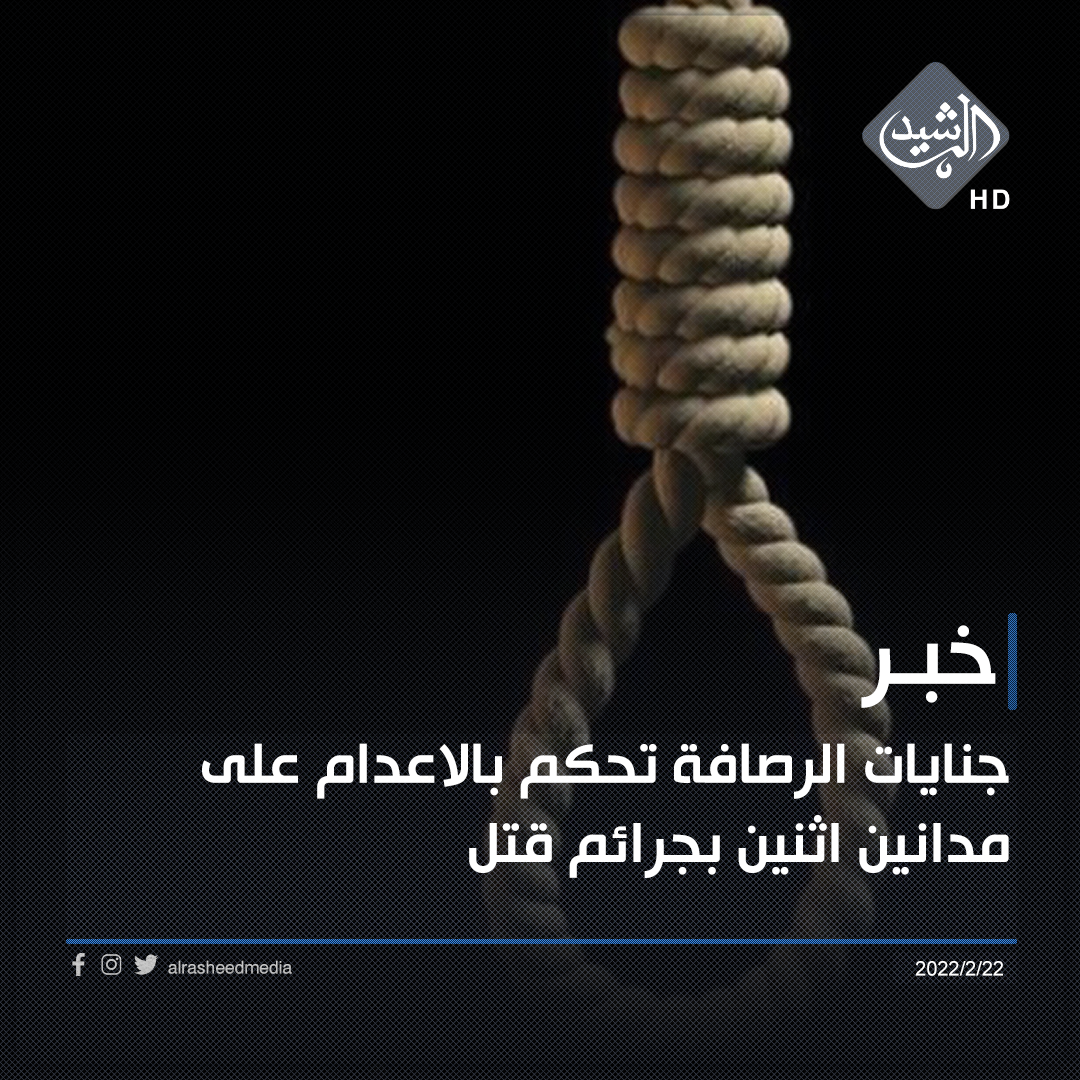 جنايات الرصافة تحكم بالاعدام على مدانين اثنين بجرائم قتل