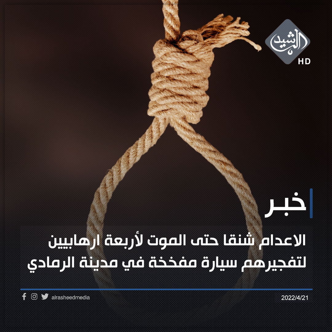 الاعدام شنقا حتى الموت لأربعة ارهابيين لتفجيرهم سيارة مفخخة في مدينة الرمادي