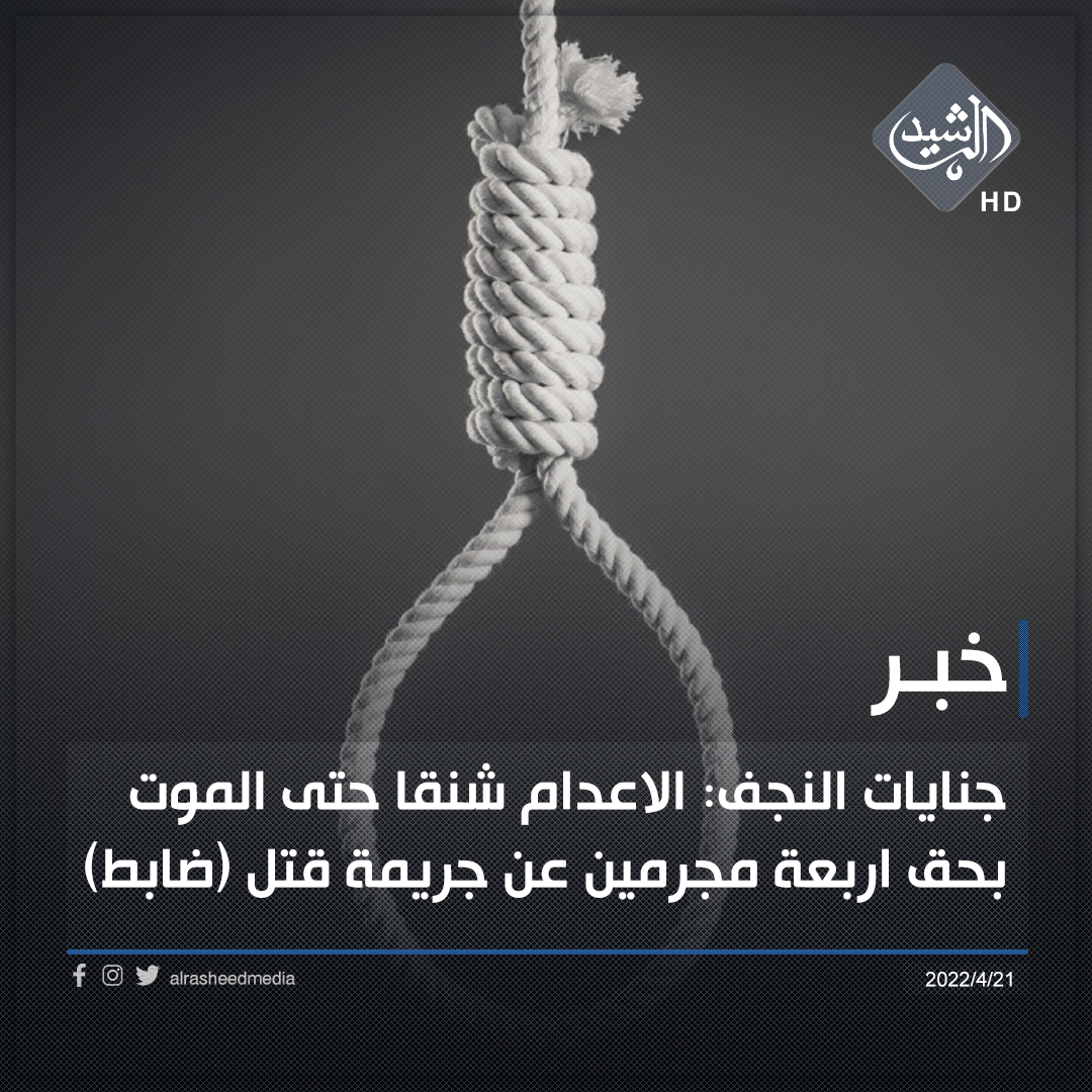جنايات النجف: الاعدام شنقا حتى الموت بحق اربعة مجرمين عن جريمة قتل (ضابط)