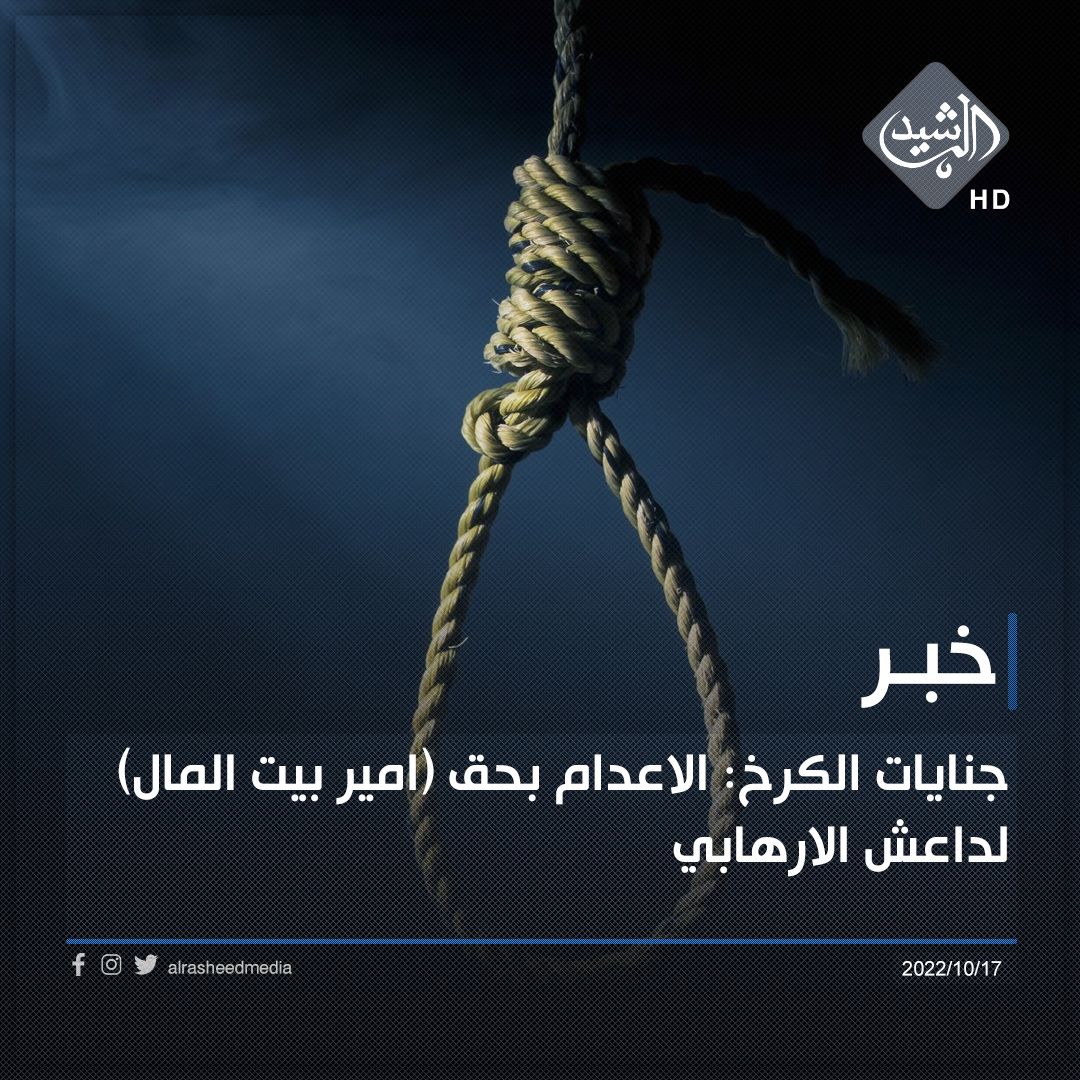 جنايات الكرخ: الاعدام بحق (امير بيت المال) لداعش الارهابي