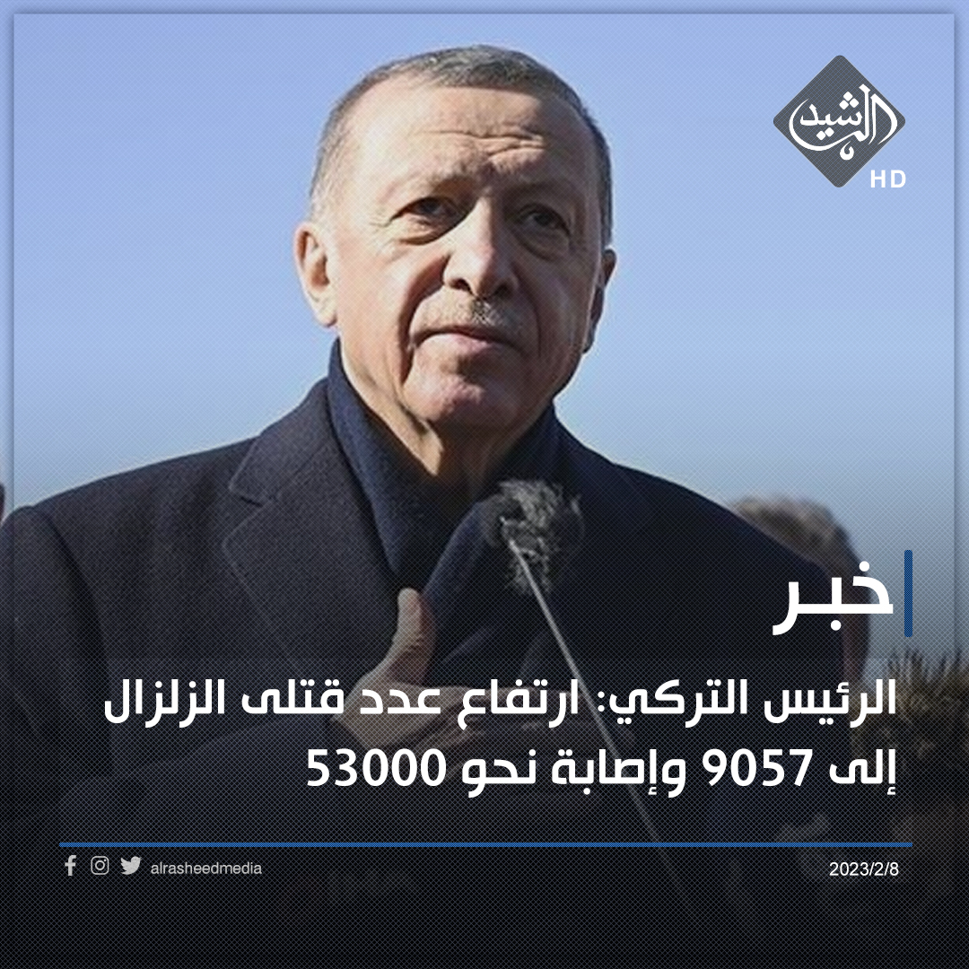 الرئيس التركي: ارتفاع عدد قتلى الزلزال إلى 9057 وإصابة نحو 53000