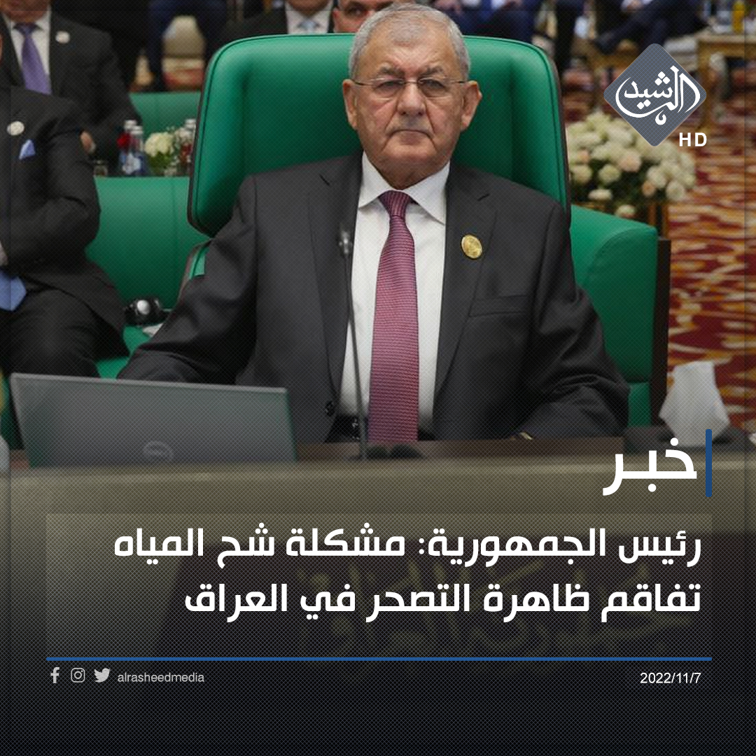رئيس الجمهورية: مشكلة شح المياه تفاقم ظاهرة التصحر في العراق