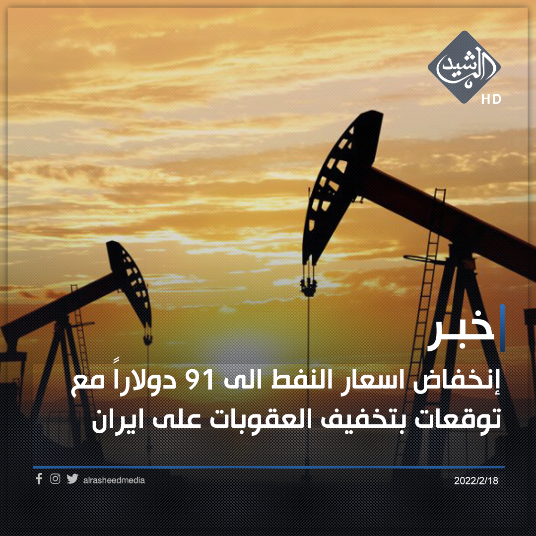 إنخفاض اسعار النفط الى 91 دولاراً مع توقعات بتخفيف العقوبات على ايران