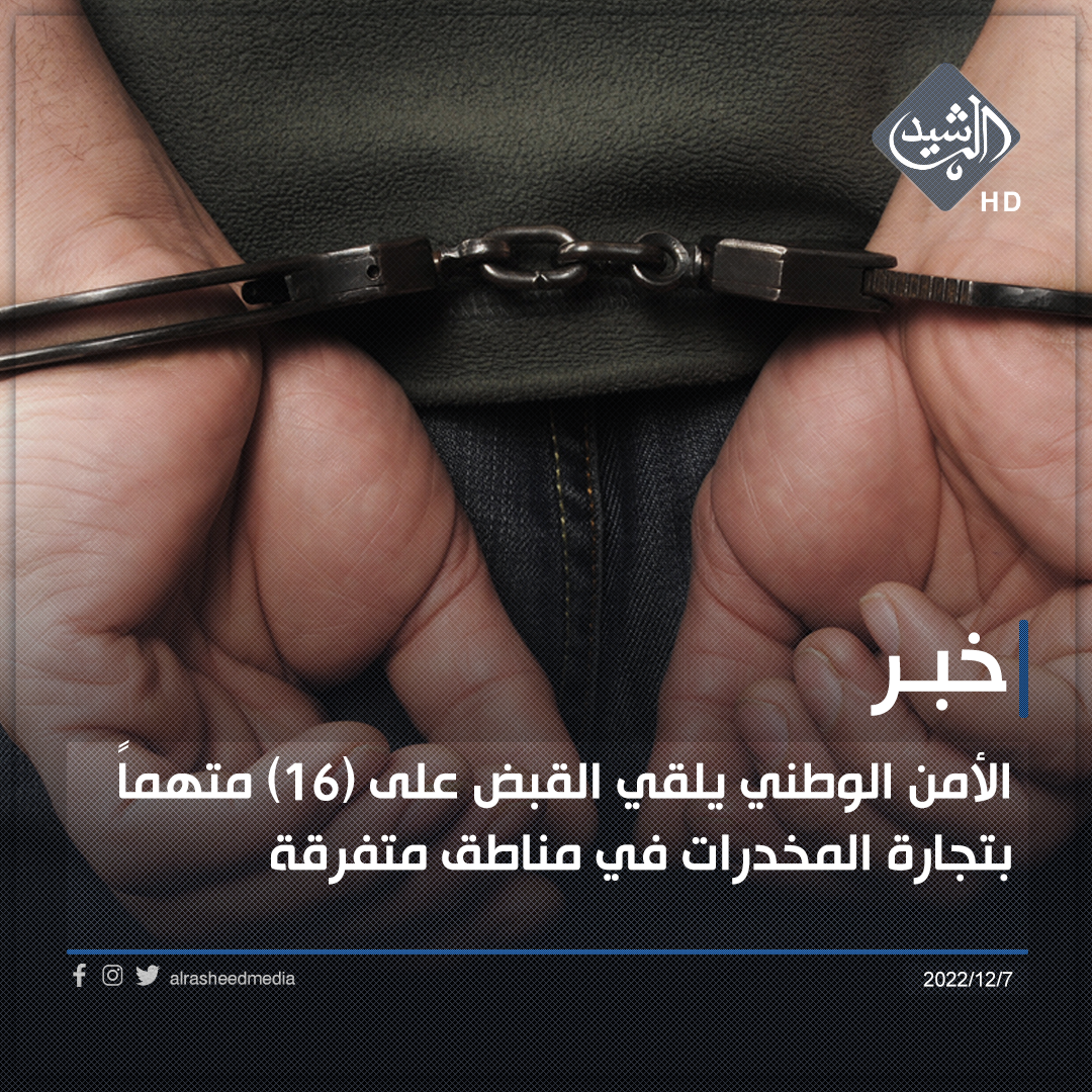 الأمن الوطني يلقي القبض على (١٦) متهماً بتجارة المخدرات في مناطق متفرقة