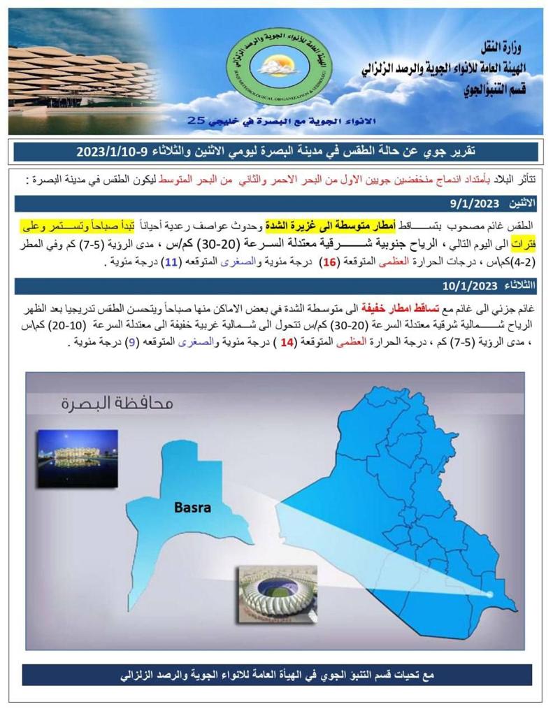 الأنواء الجوية تنشر تقريراً حول تأثر العراق بمنخفضين جويين