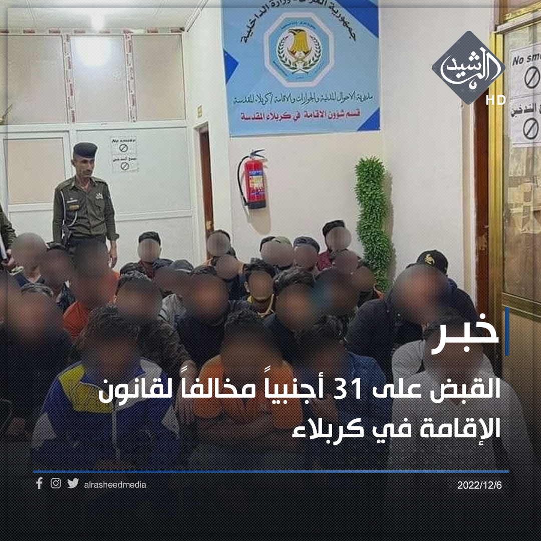 القبض على 31 أجنبياً مخالفاً لقانون الإقامة في كربلاء