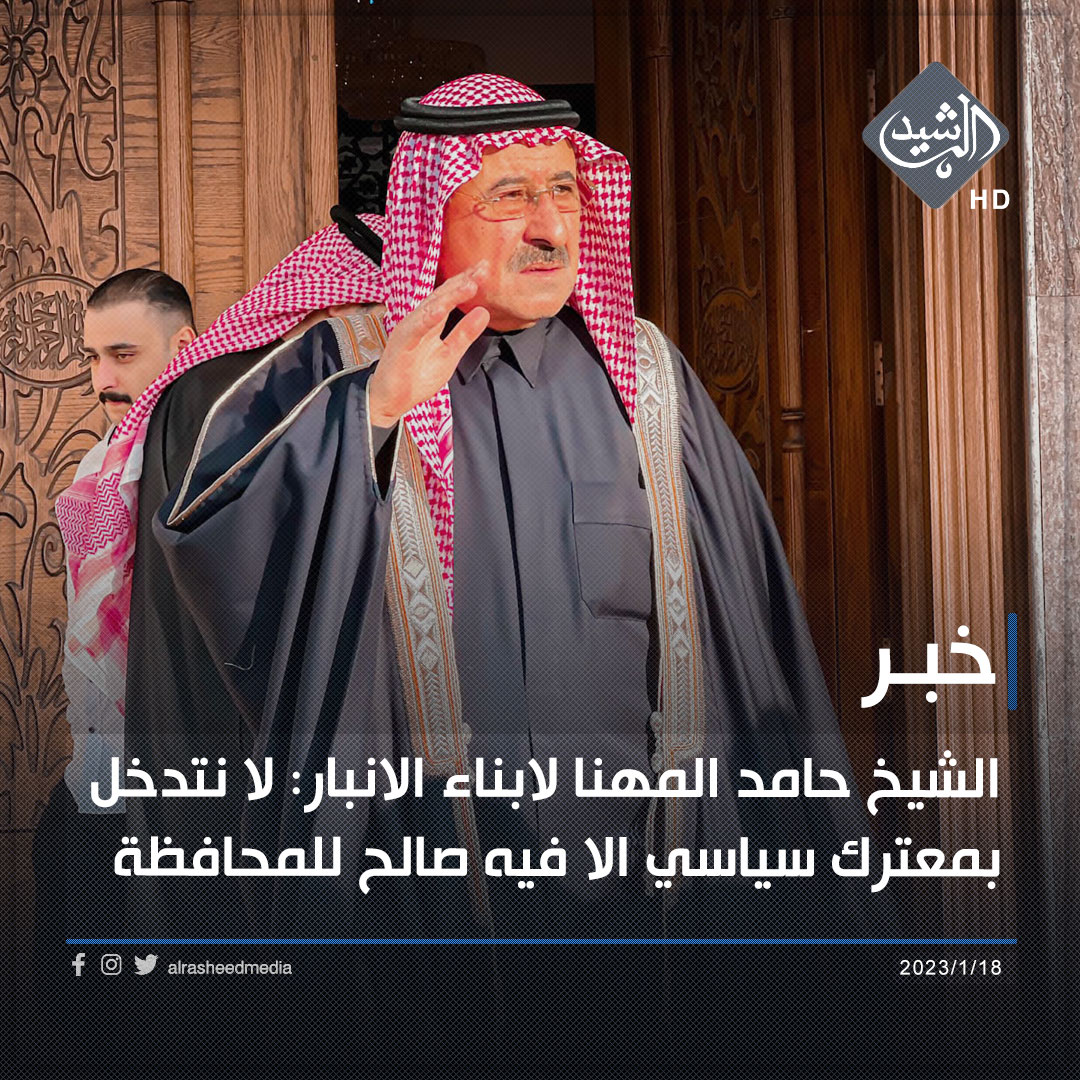 الشيخ حامد المهنا لابناء الانبار: لا نتدخل بمعترك سياسي الا فيه صالح للمحافظة
