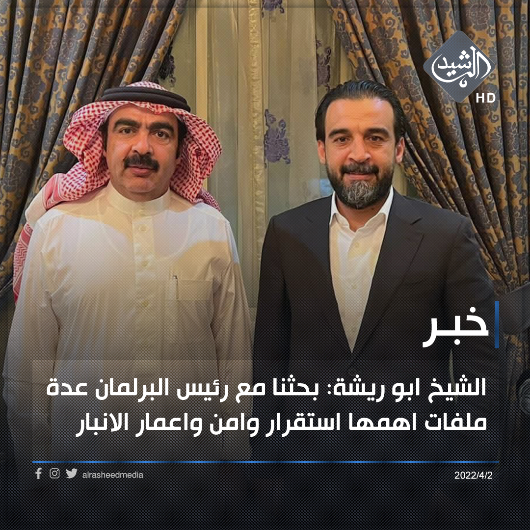 الشيخ ابو ريشة: بحثنا مع رئيس البرلمان عدة ملفات اهمها استقرار وامن واعمار الانبار