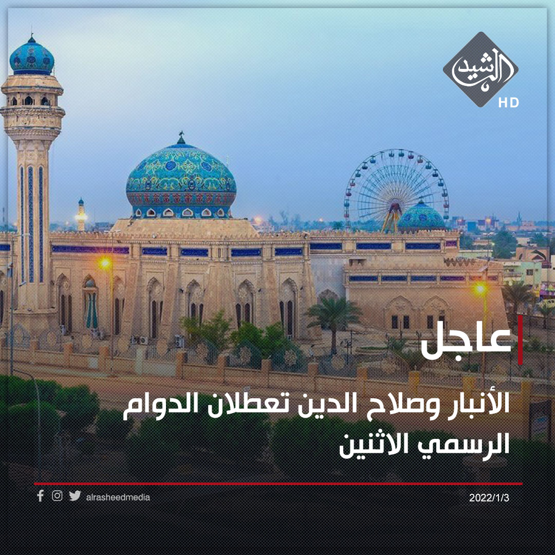 الأنبار وصلاح الدين تعطلان الدوام الرسمي الاثنين