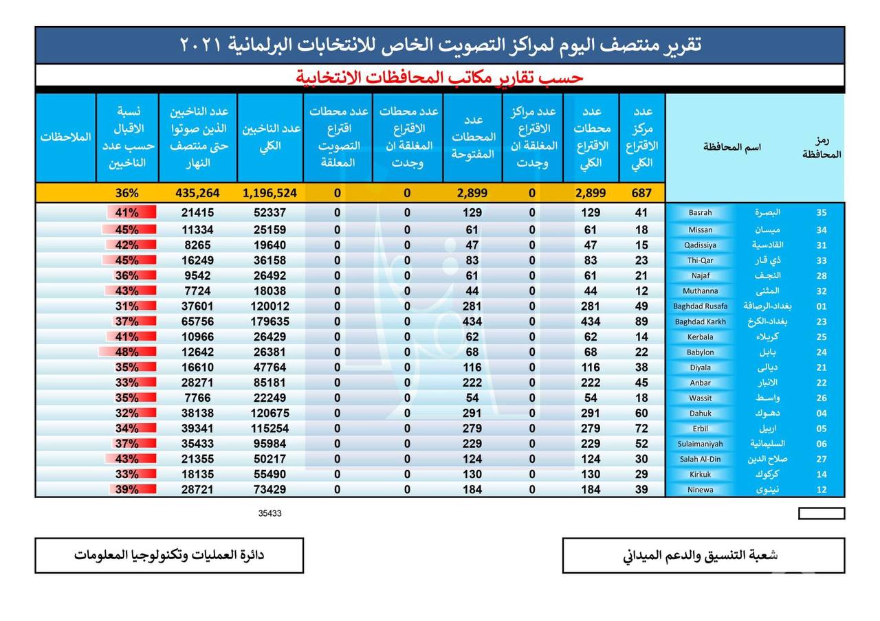 الرصافة اقل المناطق اقبالا بنسبة 31% وبابل الاعلى بنسبة 48%
