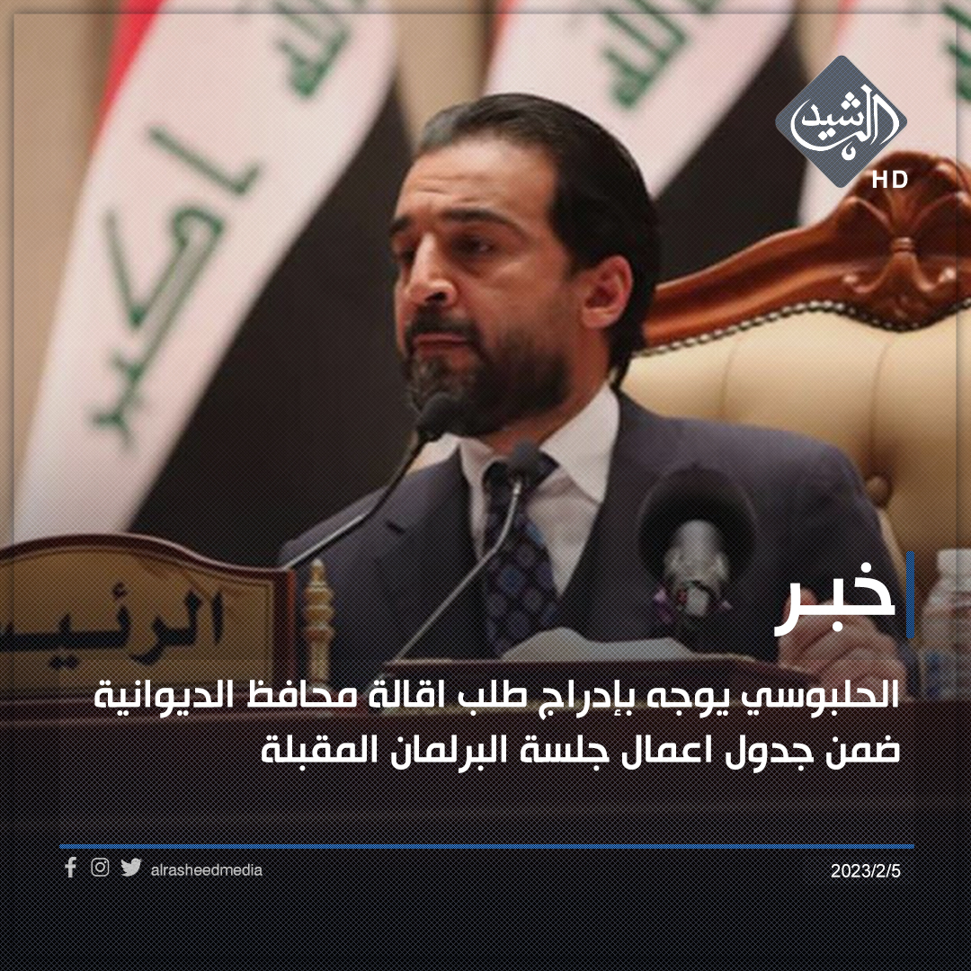 الحلبوسي يوجه بادراج طلب اقالة محافظ الديوانية ضمن جدول اعمال جلسة البرلمان المقبلة