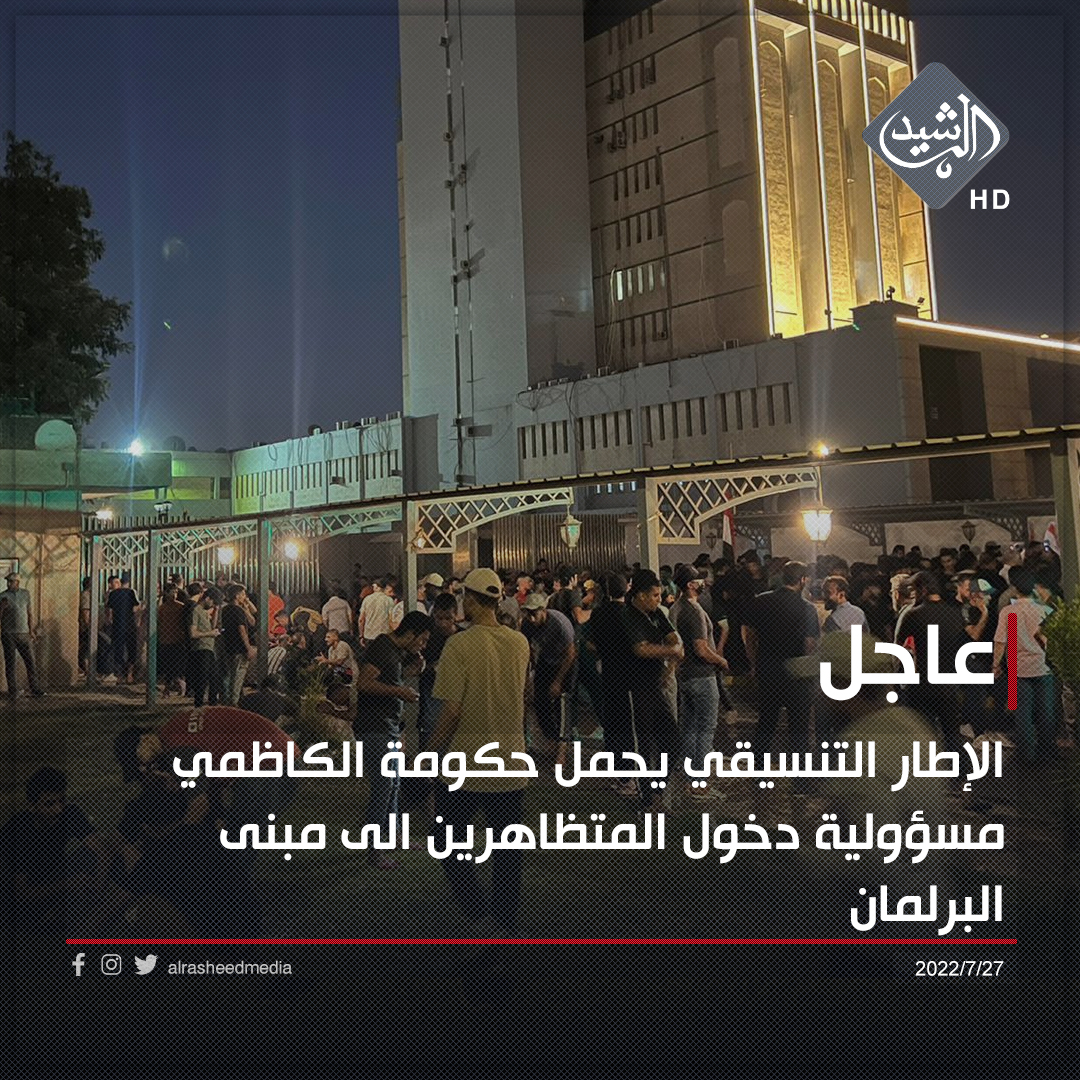 الإطار التنسيقي يحمل حكومة الكاظمي مسؤولية دخول المتظاهرين الى مبنى البرلمان