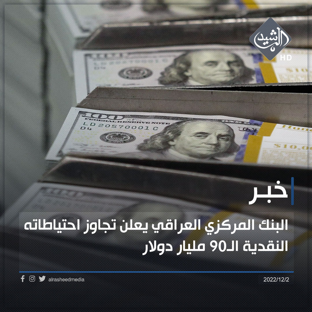 البنك المركزي العراقي يعلن تجاوز احتياطاته النقدية الـ90 مليار دولار