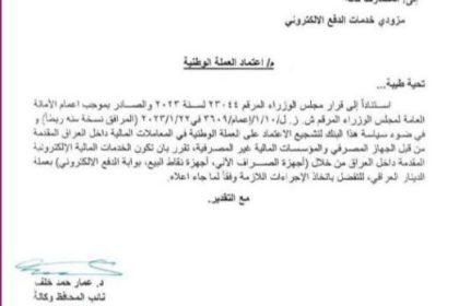 البنك المركزي: التعامل بالدينار العراقي سيمتد إلى القطاع الخاص