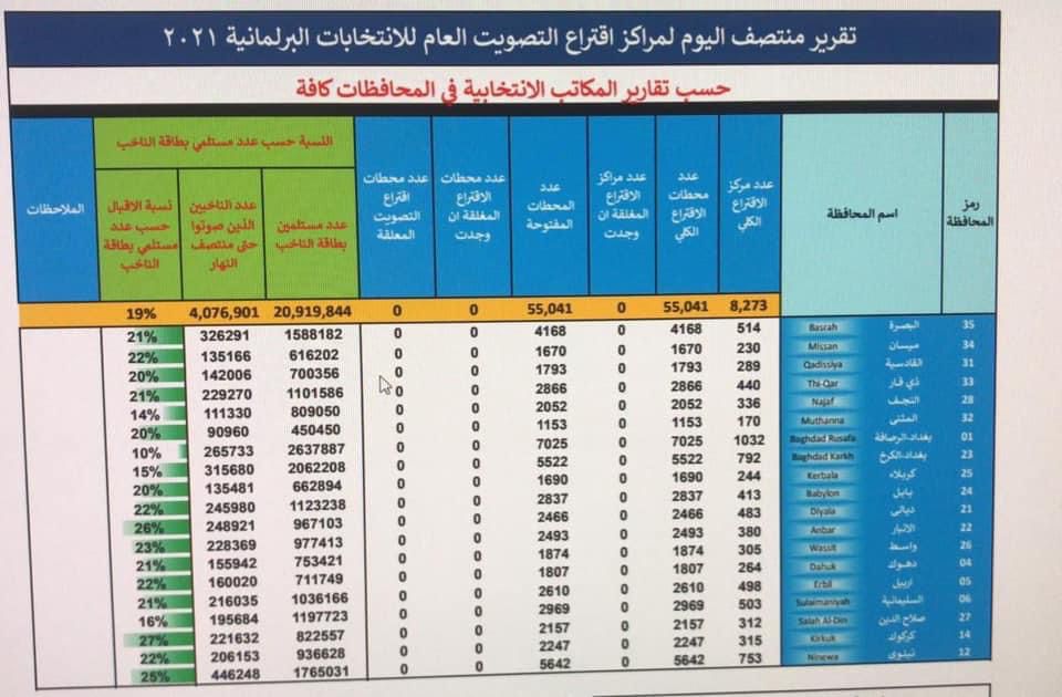 الرشيد تنشر تقرير منتصف اليوم بنسب المشاركة بالتصويت العام