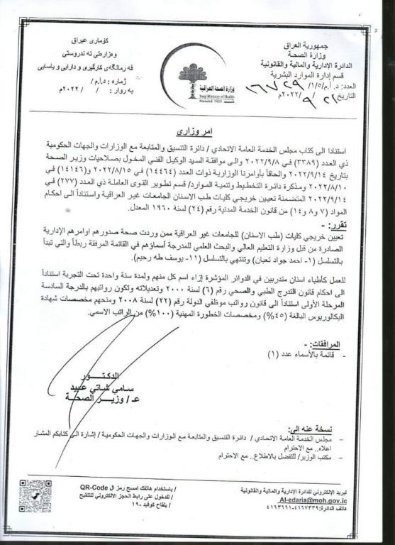 الرشيد تنشر توزيع التعيينات للخريجين الاوائل وحملة الشهادات العليا