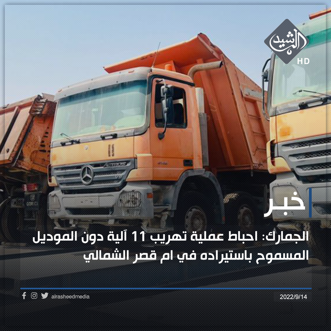 الجمارك: احباط عملية تهريب 11 آلية دون الموديل المسموح باستيراده في ام قصر الشمالي