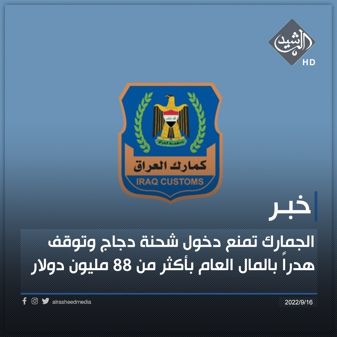 الجمارك تمنع دخول شحنة دجاج وتوقف هدراً بالمال العام بأكثر من 88 مليون دولار