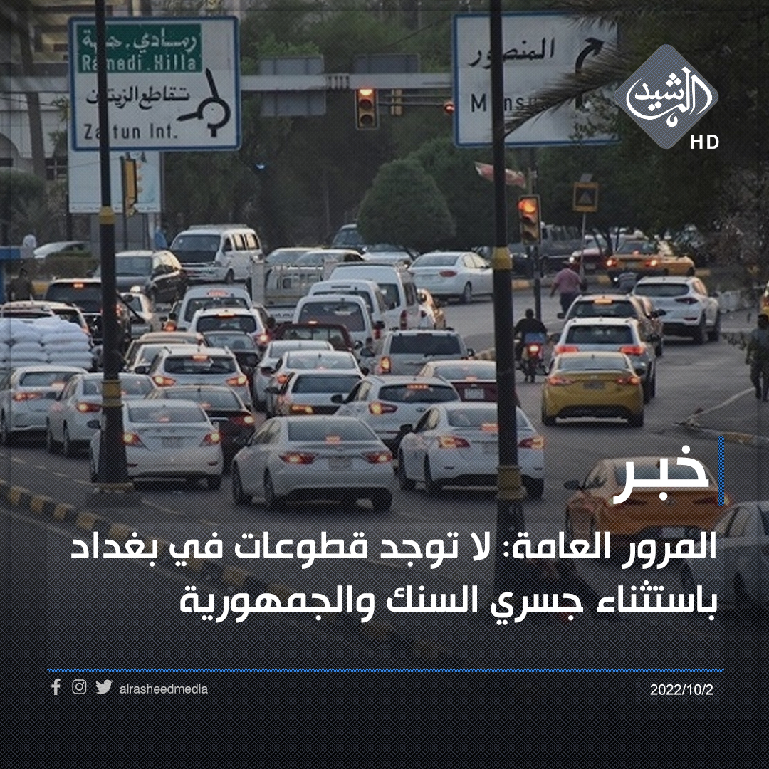 المرور العامة: لا توجد قطوعات في بغداد باستثناء جسري السنك والجمهورية