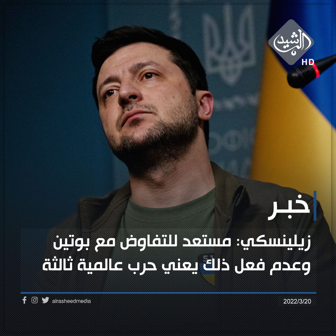زيلينسكي: مستعد للتفاوض مع بوتين وعدم فعل ذلك يعني حرب عالمية ثالثة