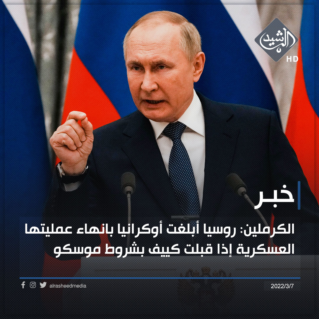 الكرملين: روسيا أبلغت أوكرانيا بانهاء عمليتها العسكرية إذا قبلت كييف بشروط موسكو