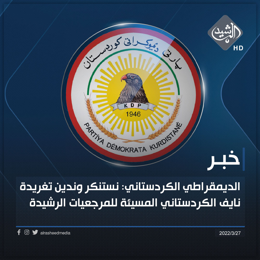 الديمقراطي الكردستاني: نستنكر وندين تغريدة نايف الكردستاني المسيئة للمرجعيات الرشيدة