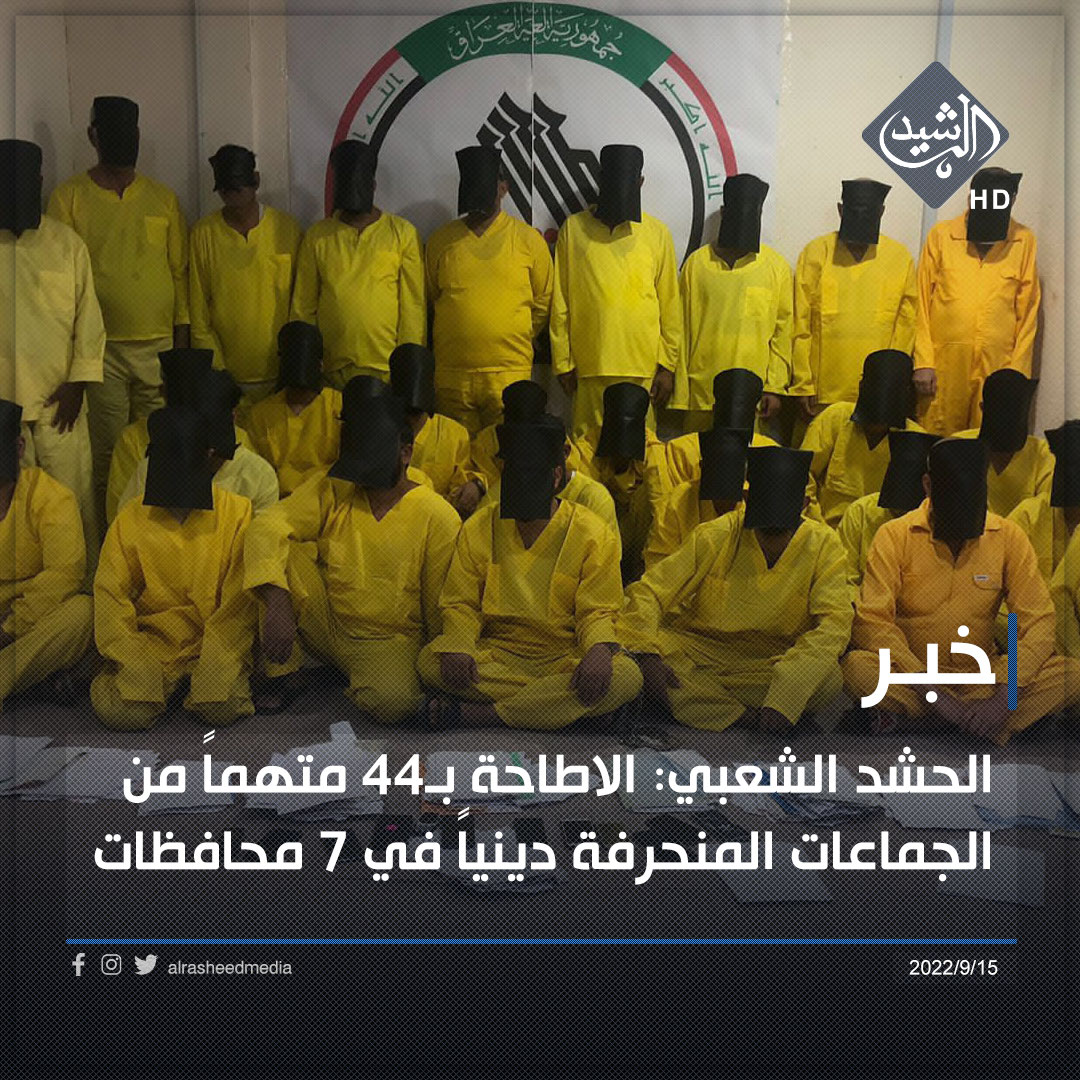 الحشد الشعبي: الاطاحة بـ44 متهماً من الجماعات المنحرفة دينياً في 7 محافظات