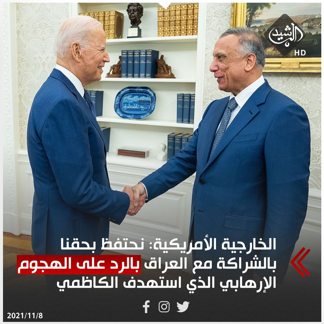 الخارجية الأمريكية: نحتفظ بحقنا بالشراكة مع العراق بالرد على الهجوم الإرهابي الذي استهدف الكاظمي