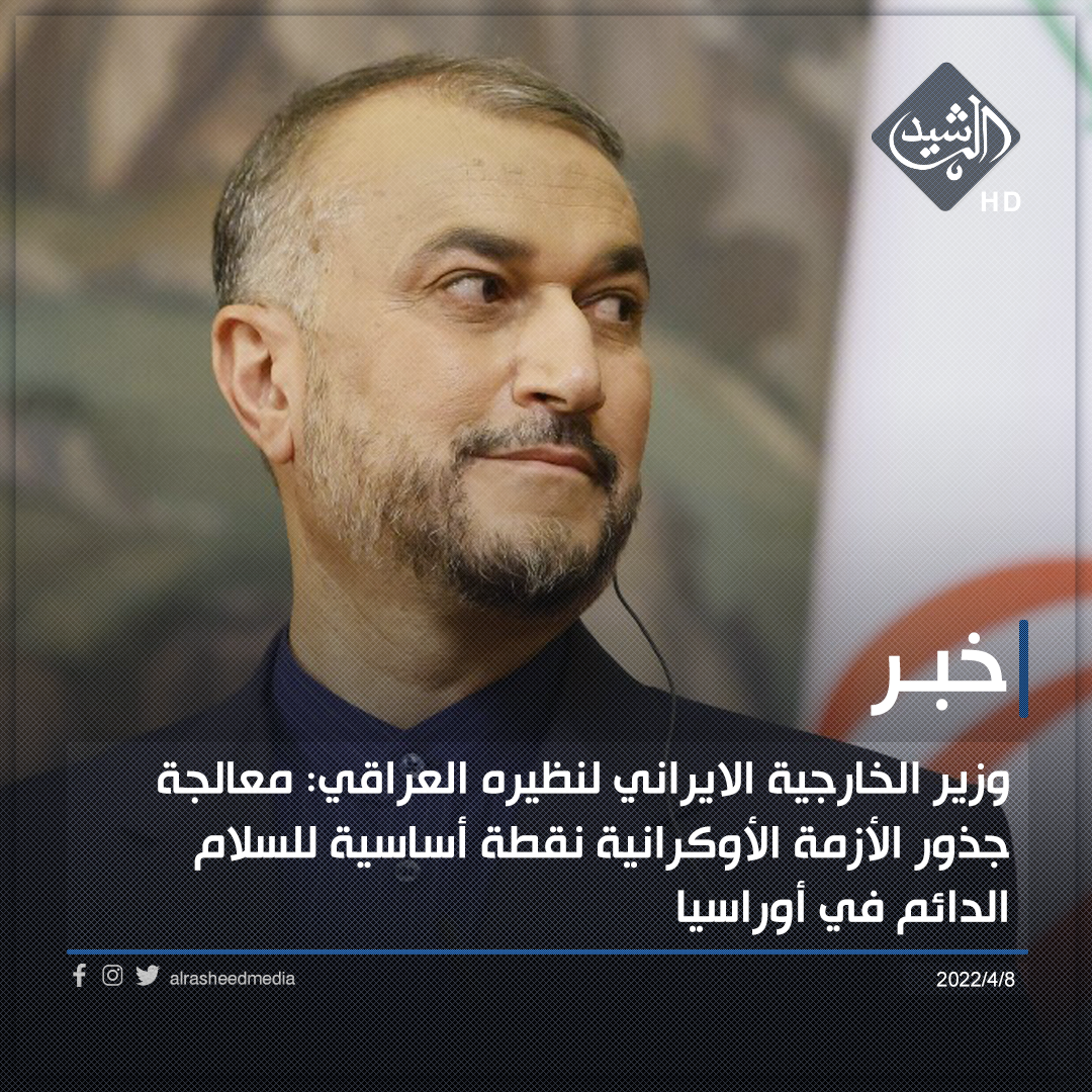 وزير الخارجية الايراني لنظيره العراقي: معالجة جذور الأزمة الأوكرانية نقطة أساسية للسلام الدائم في أوراسيا