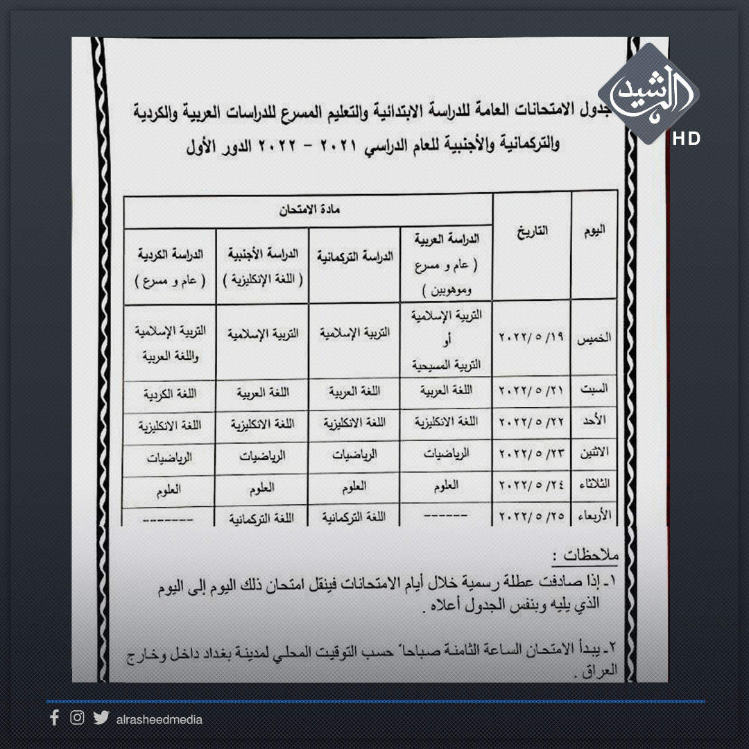 التربية تجري تعديلا على جدول امتحانات الدراسة الابتدائية للدور الأول