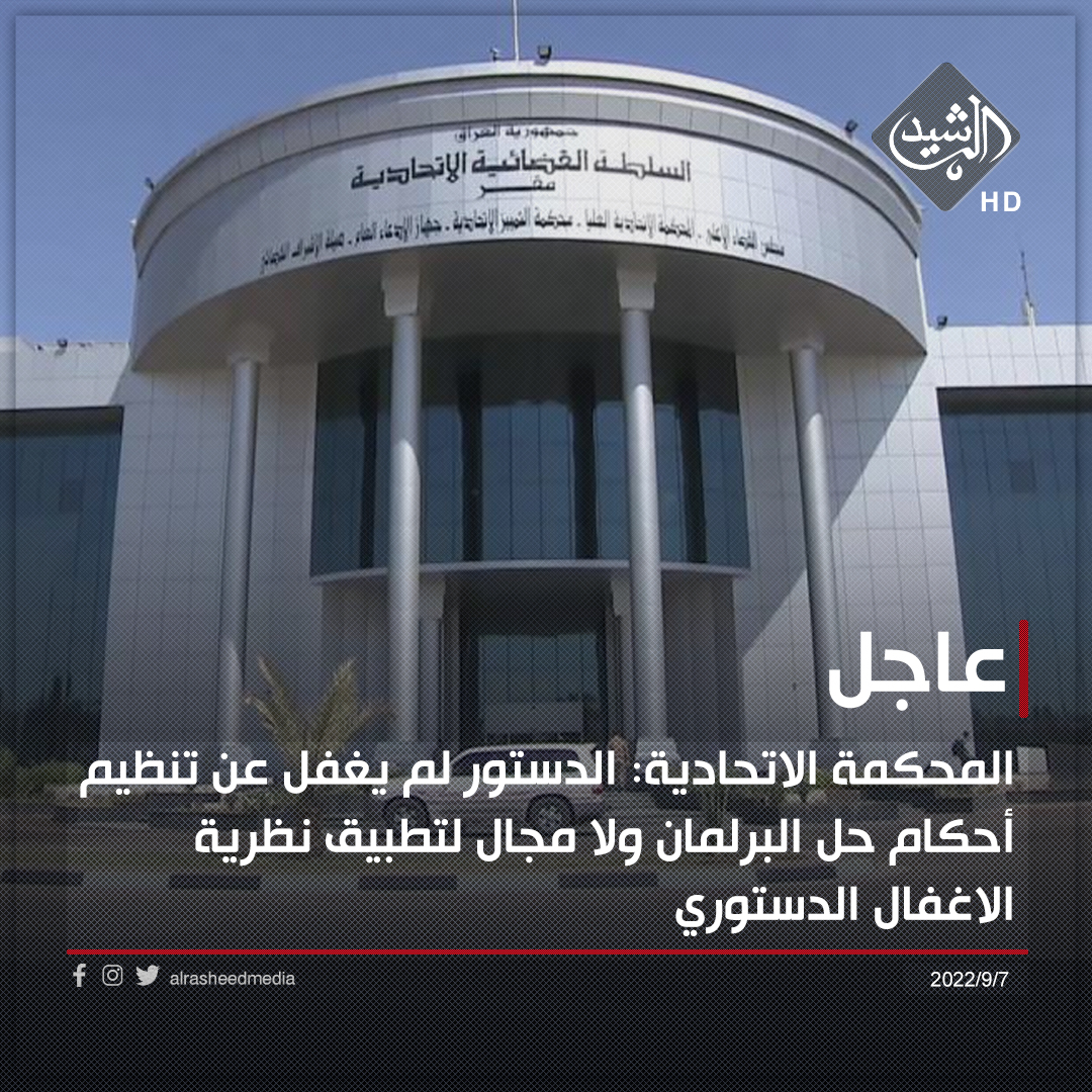 المحكمة الاتحادية: الدستور لم يغفل عن تنظيم أحكام حل البرلمان ولا مجال لتطبيق نظرية الاغفال الدستوري