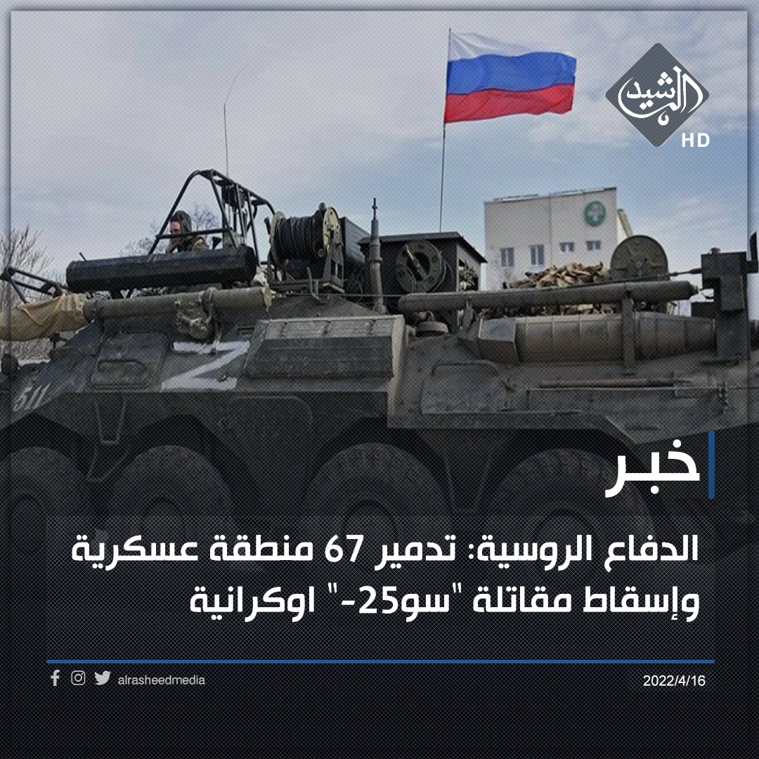 الدفاع الروسية: تدمير 67 منطقة عسكرية وإسقاط مقاتلة "سو-25" اوكرانية