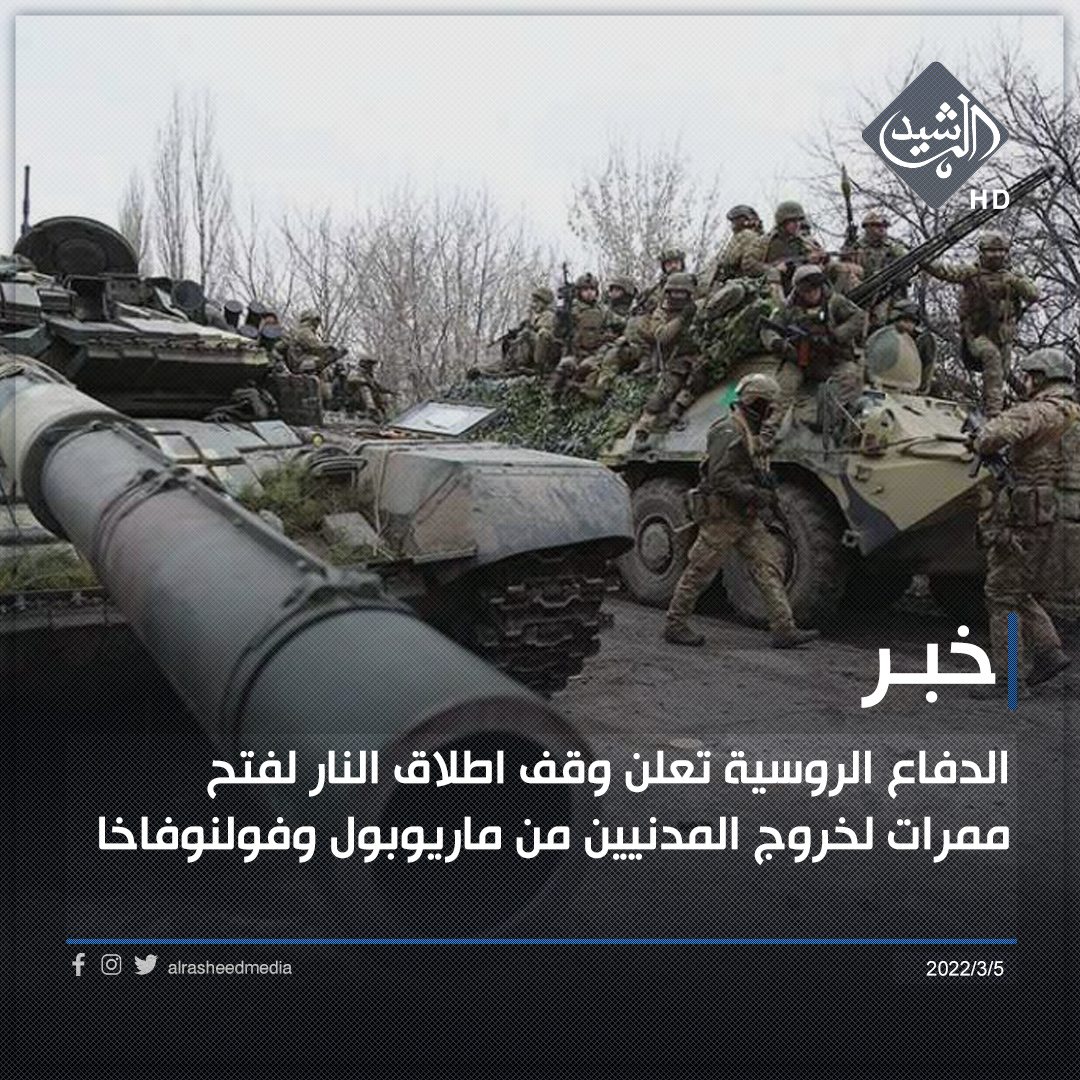 الدفاع الروسية تعلن وقف اطلاق النار لفتح ممرات لخروج المدنيين من ماريوبول وفولنوفاخا