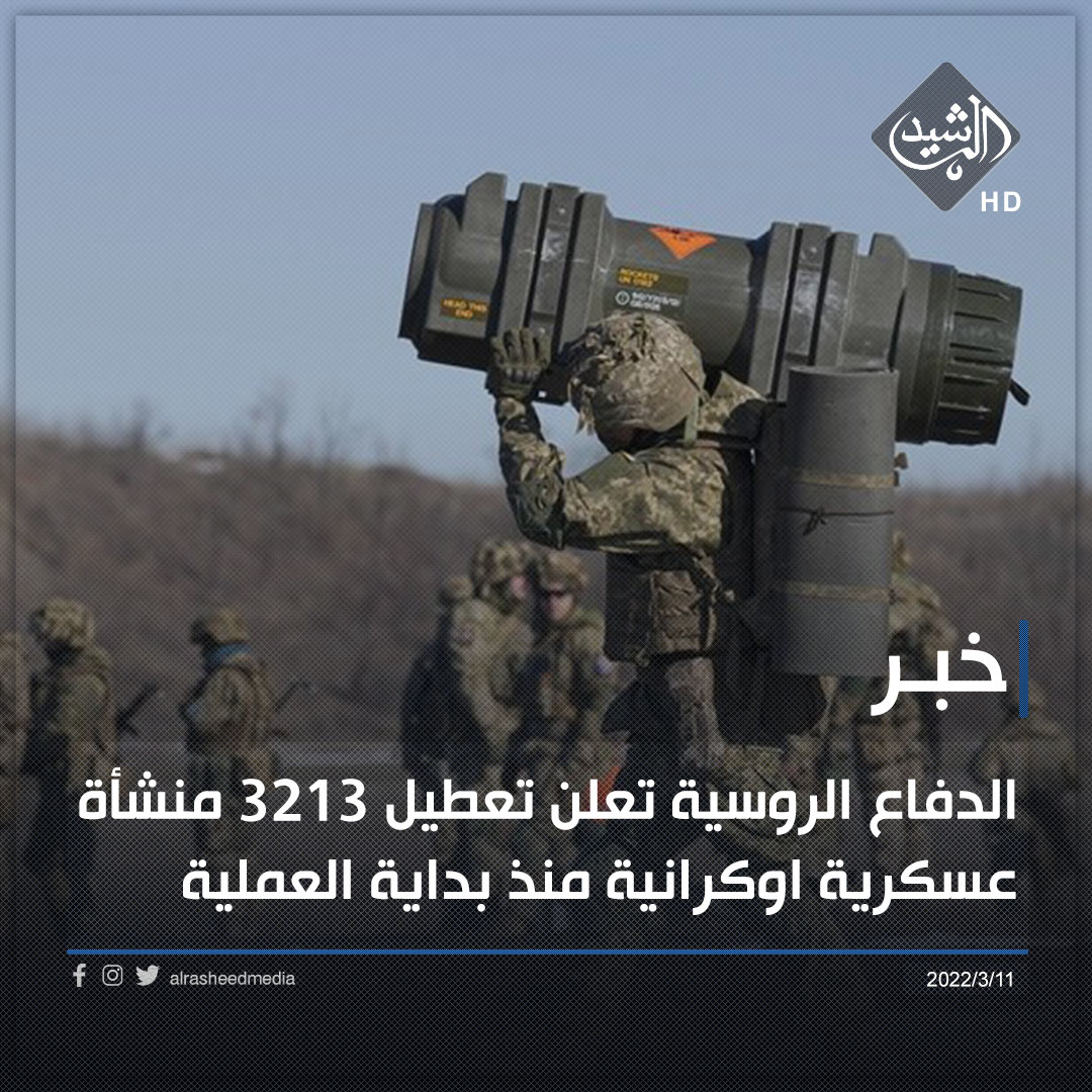 الدفاع الروسية تعلن تعطيل 3213 منشأة عسكرية اوكرانية منذ بداية العملية