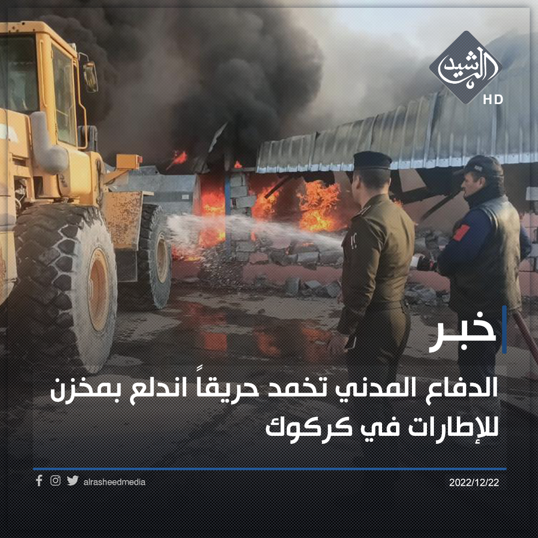 الدفاع المدني تخمد حريقاً اندلع بمخزن للإطارات في كركوك